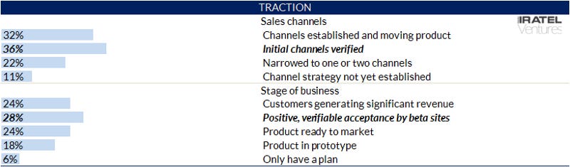 Our traction data shows a big dilemma. We have great teams building great products but when it gets to traction, many struggle. This is reflected in our data being evenly distributed between the different answers. We wish we had a magic wand that could give our startups instant traction. What we can help with is verifying the initial channels and provide a sounding board.